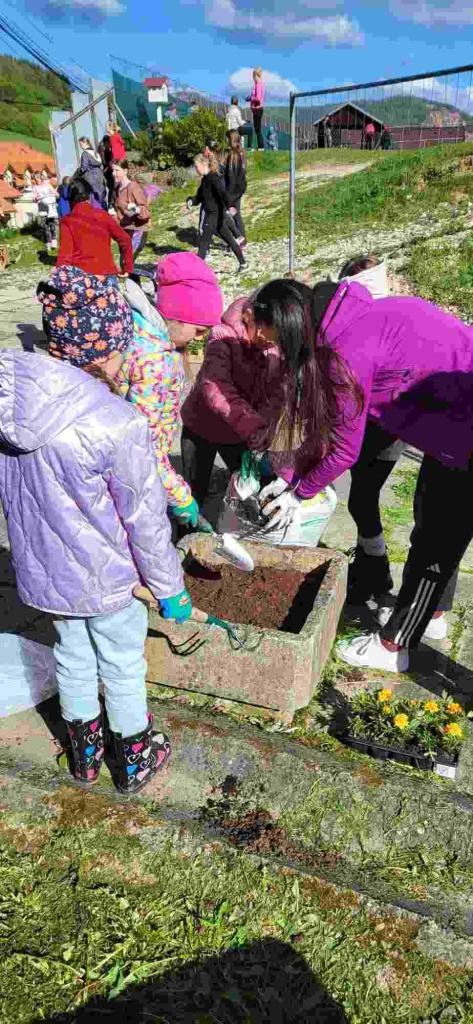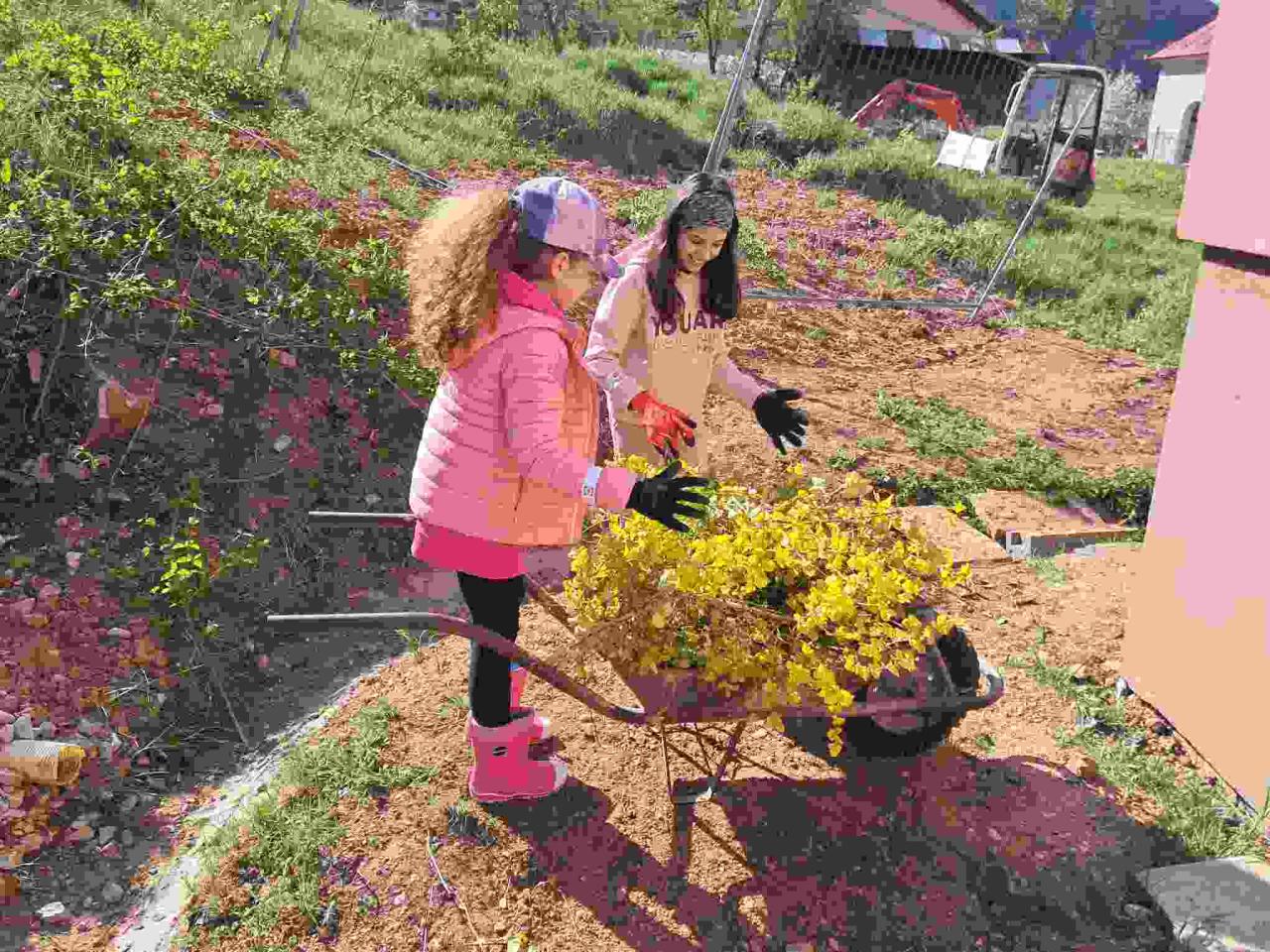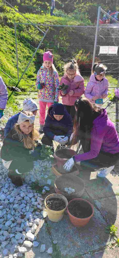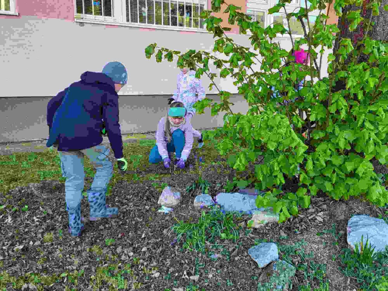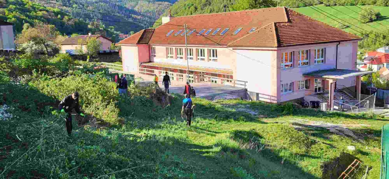Podarilo sa nám odstrániť náletové dreviny a konáre stromov, ktoré boli následne spracované štiepkovačom na štiepky, ostrihať kríky, pokosiť trávnik a upraviť detské ihrisko, vyčistiť a skrášliť celé okolie školy výsadbou kvetín, namaľovať altánok, upraviť živý plot.