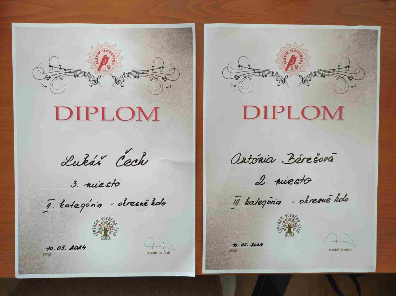 A veru dnes bol ich aj náš veľmi šťastný deň. Začalo to tým, že si všetci traja vyžrebovali číslo tri, teda ako tretí v poradí vo svojich kategóriách predviedli svoje piesne. A týmto to neskončilo. Krásne umiestnenie si vyspievali Antónia Bérešová v III. kategórii - druhé miesto a Lukáš Čech v II. kategórii - tretie miesto.