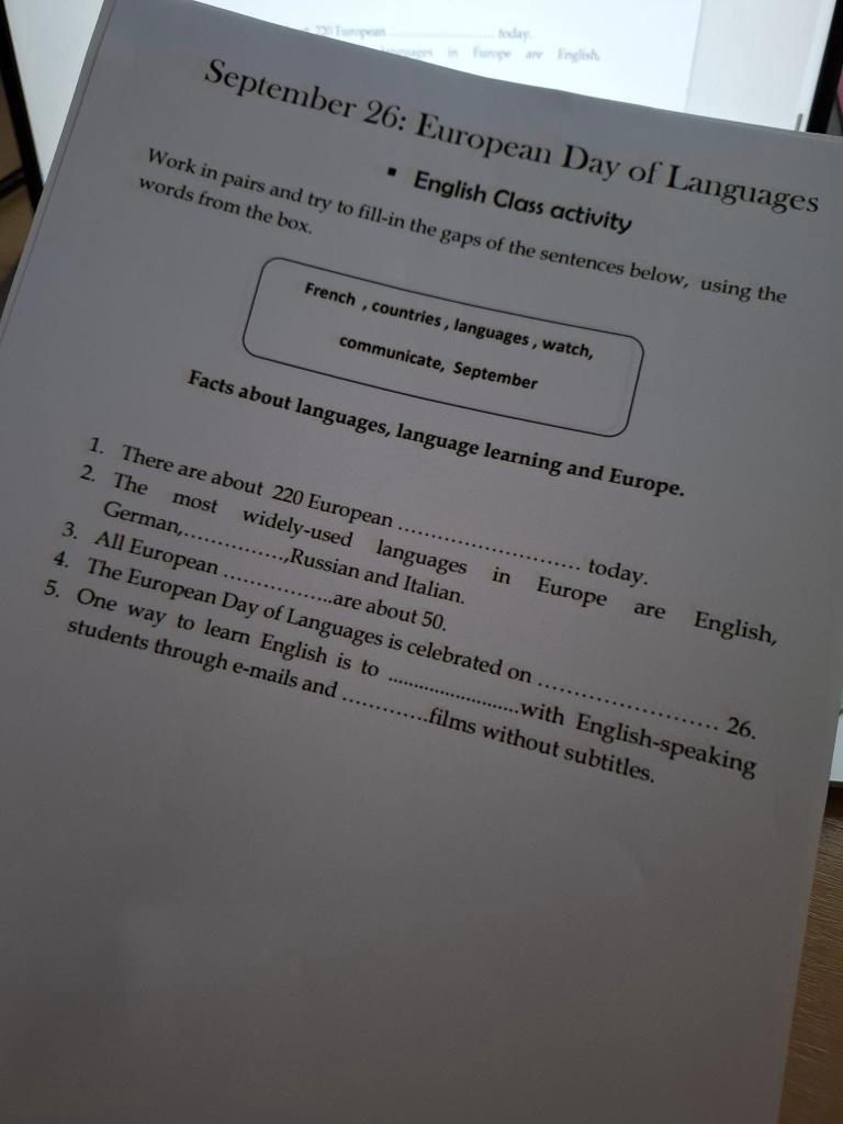 My sme si tento deň spríjemnili na hodinách anglického jazyka rôznymi zaujímavými aktivitami. Naši žiaci už vedia aj niečo o jazyku SILBO, aký je najstarší európsky jazyk a aj to koľkými jazykmi hovorí Novak Djokovič.