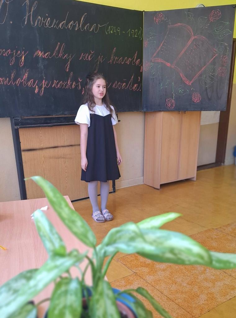 Z našich šikovných recitátorov bolo veru ťažké vybrať si tých, ktorý nás pôjdu reprezentovať na okresné kolo. Žiaci recitovali s odhodlaním, s humorom ale aj s iskrou v oku. Porota teda rozhodla a na okres nás pôjdu reprezentovať Nikola Verebová (3.tr.) - I.kat. poézia,