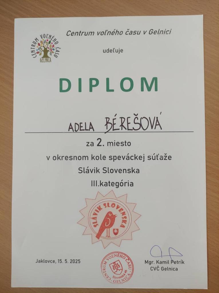 Srdečne jej blahoželáme a Simonke a Dodkovi ďakujeme za krásny a bezchybný spev a reprezentáciu školy. Všetkým prajeme, aby im to aj naďalej pekne "ľudovo" spievalo.